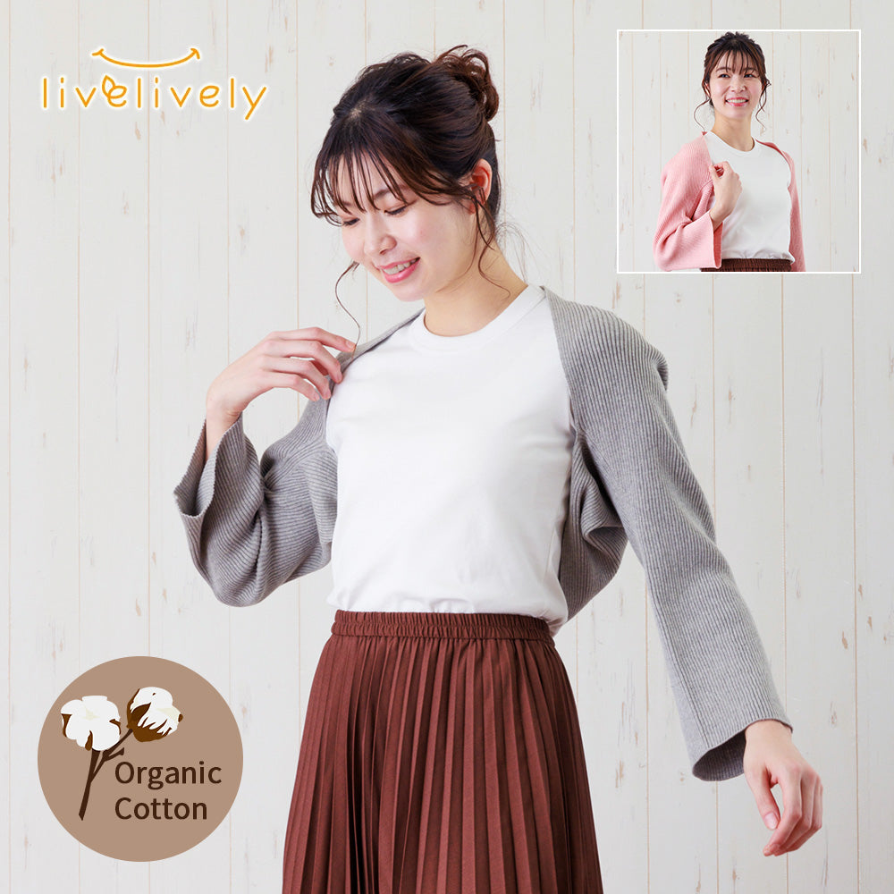 リブリブリ ボレロカーディガン オーガニックコットン UVケア 冷暖房対策に ストールとしても ボレロ 長袖 カーディガン ショート丈 レディース 女性用 婦人用 ゆったり リブ 生地livelively